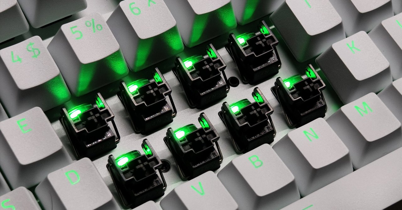 那么外观方面的介绍到这里就结束了,我们来看看它的轴体吧。轴体方面他并不是传统的机械轴,也不是目前火爆市场的磁轴,而是雷蛇第二代的模拟光轴