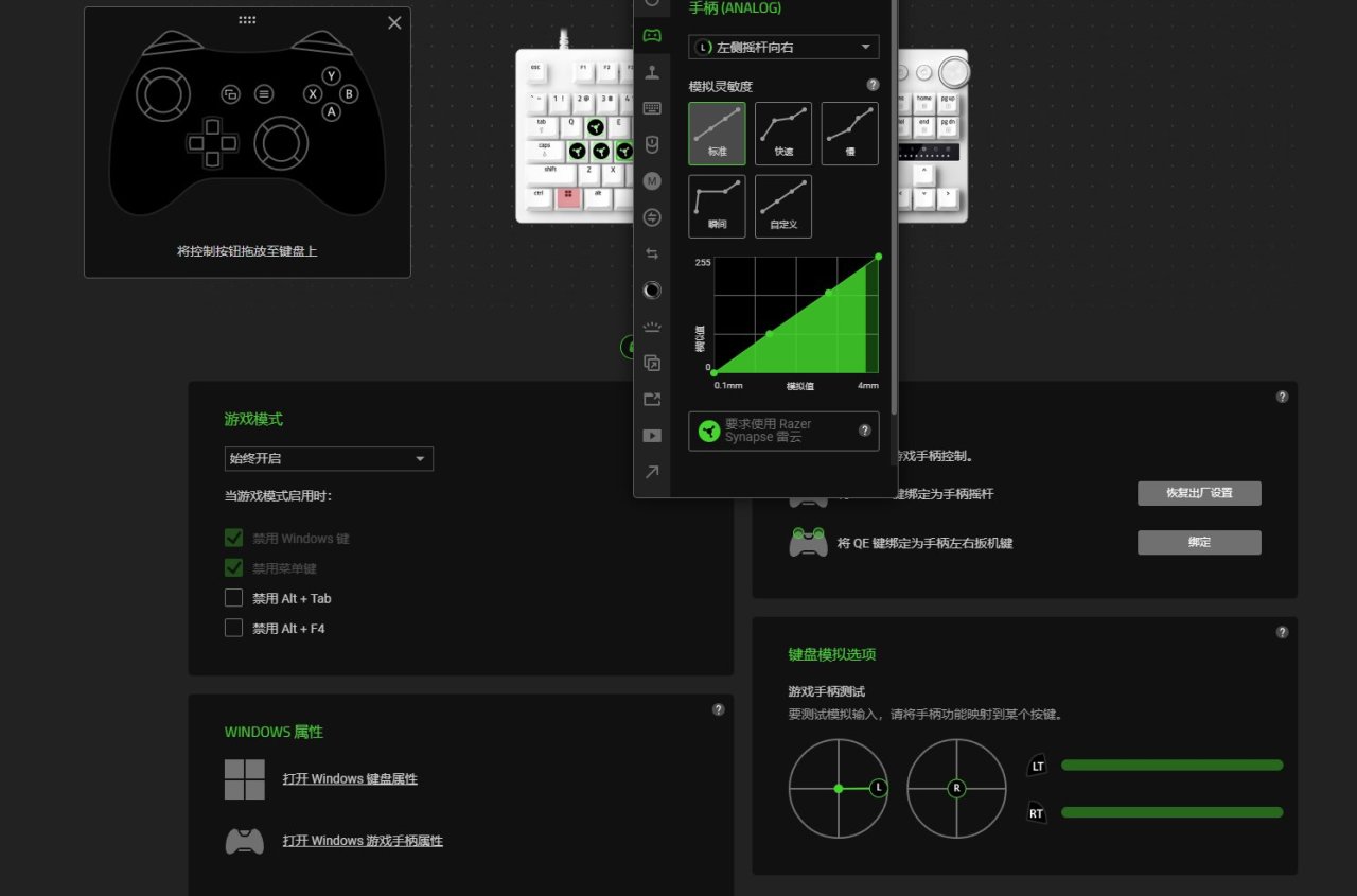 如果你还玩其他游戏,比如说地平线4和5这种赛车游戏而言,猎魂光蛛V3其实还蛮友好的,专门出了个模拟手柄线性扳机的功能