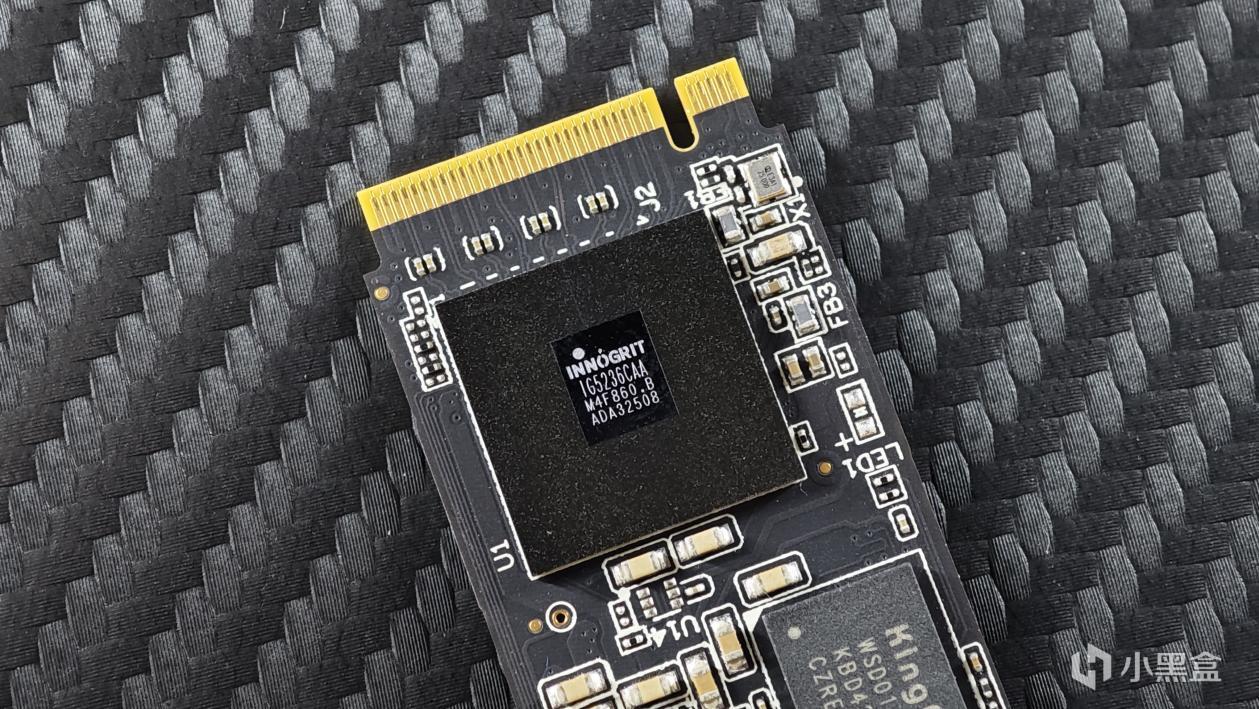 正面是2颗闪存颗粒加上主控和缓存,主控是英韧IG5236CAA,采用12nm FinFET CMOS工艺,支持PCIe Gen4 x4接口与NVMe 1.4协议。顺序读取速度可达7400MB/s,顺序写入速度6800MB/s。