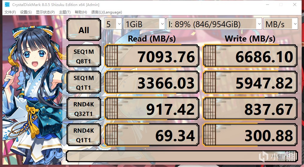 1M顺序读取速度为7093.76MB/s,1M顺序写入速度为6686.10MB/s。