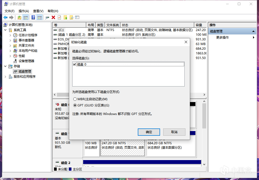 第一次安装新的固态硬盘时,需要给固态硬盘初始化才能使用。右键“我的电脑”,点击“管理”。然后点击“磁盘管理”,这里会提示初始化磁盘,点击“确定”,就可以看到未分配的磁盘。右键新盘,初始化和分配内存容量,一直往下走不用点别的选项就可以完成磁盘的初始化了。1TB的存储容量,最后换算过来的存储容量为是953GB,主要原因是硬盘厂商采用十进制计算(1TB=1000GB),而操作系统(如Windows)采用二进制计算(1TB=1024GB),两者换算标准不同导致显示差异。