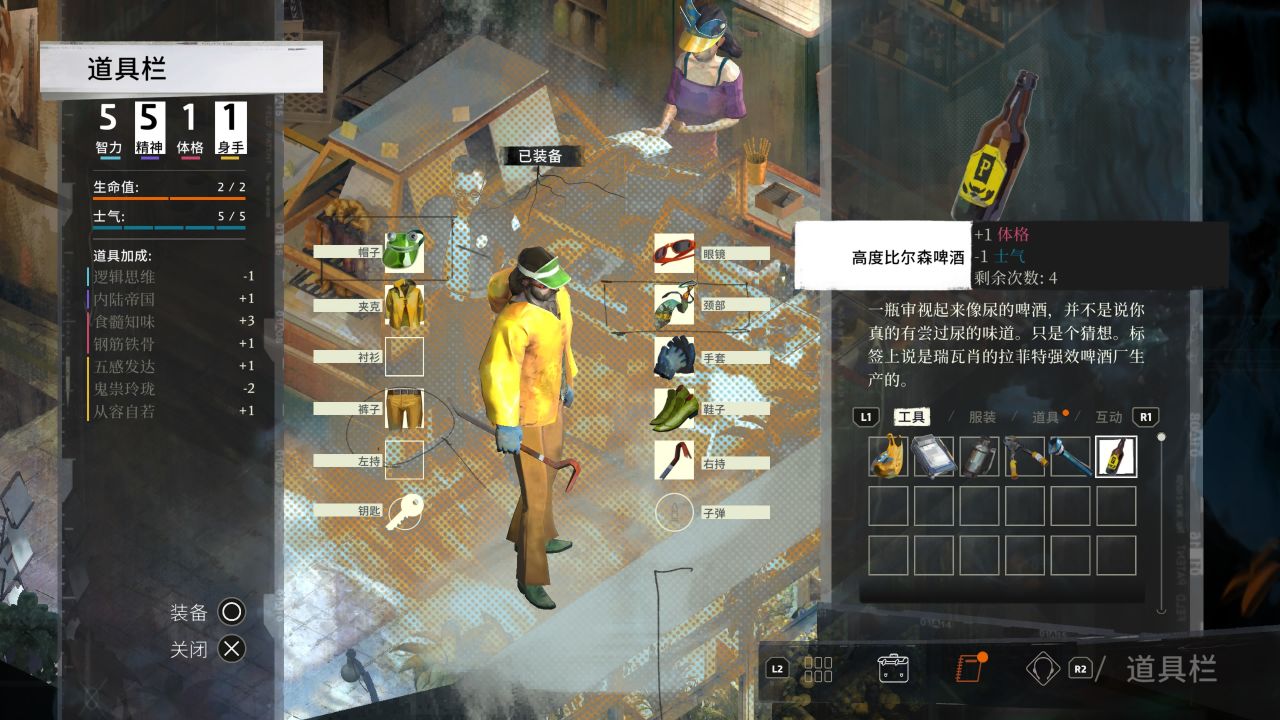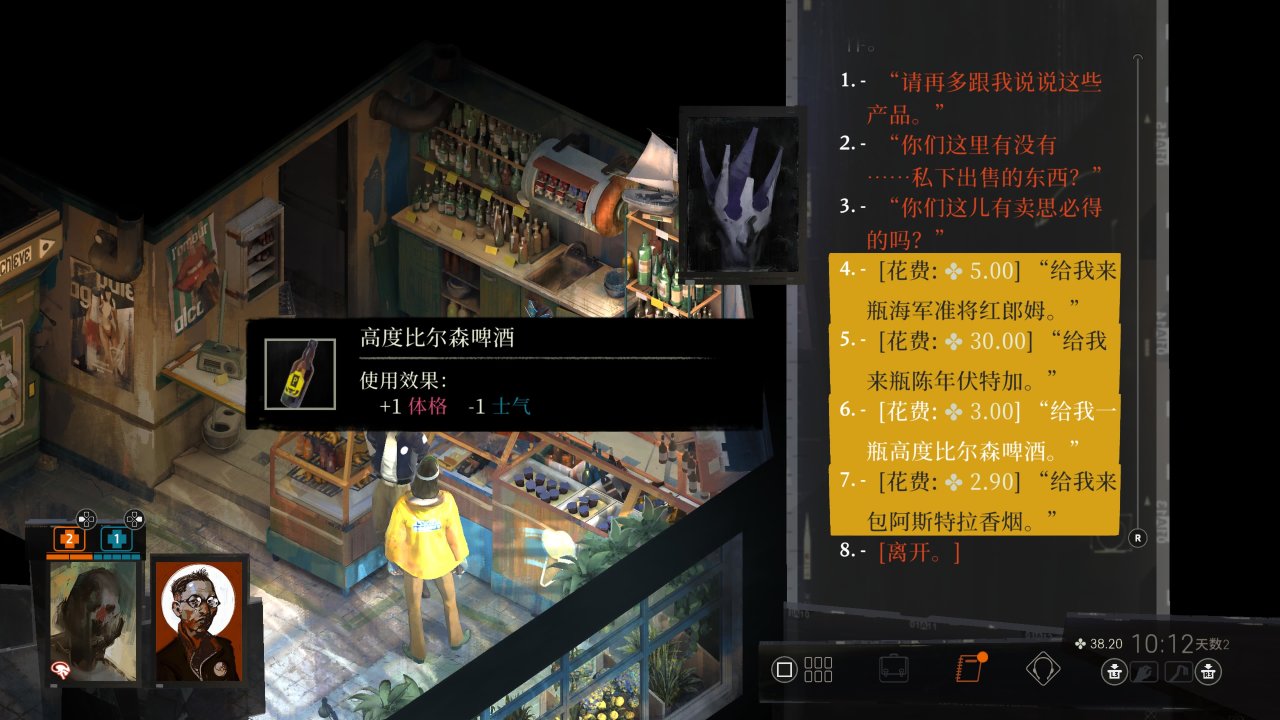 确认上述要求达标后去商店购买一瓶最便宜的高度比尔森啤酒,之所以要把食髓知味堆到7是因为游戏购买和拾取消耗品的剩余使用次数是依据食髓知味等级来计算,食髓知味≥7购买一瓶可以使用4次。