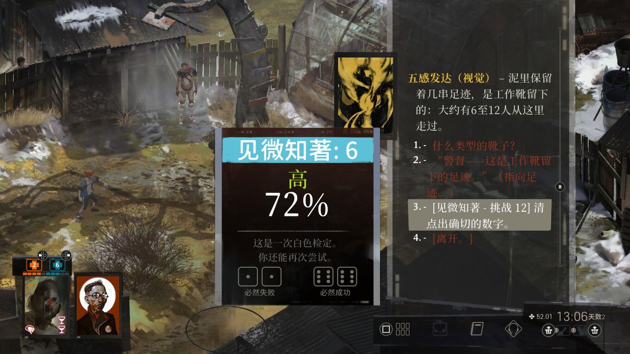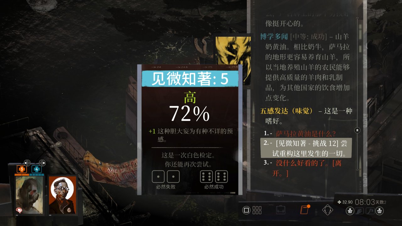 *五感发达会影响感知球出现和地图细节,部分物品和互动需要五感发达属性达标才能看见。