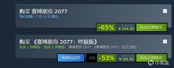 而今年夏促最值得购买的3A大作那必须是赛博朋克2077和它的DLC,目前迎来史低,价格为:本体104.3元