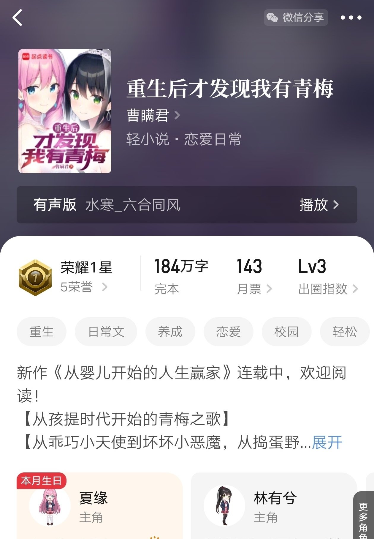 第五部《重生后才发现我有青梅》作者:曹瞒君