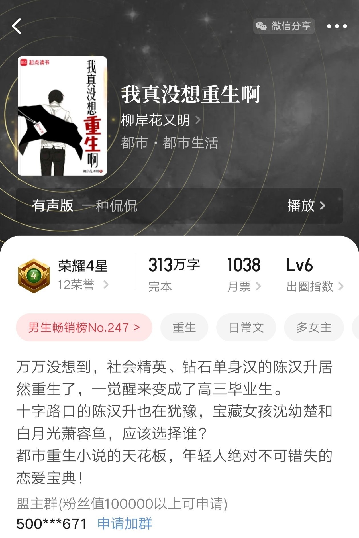 第一部:《我真没想重生啊》作者:柳暗花又明