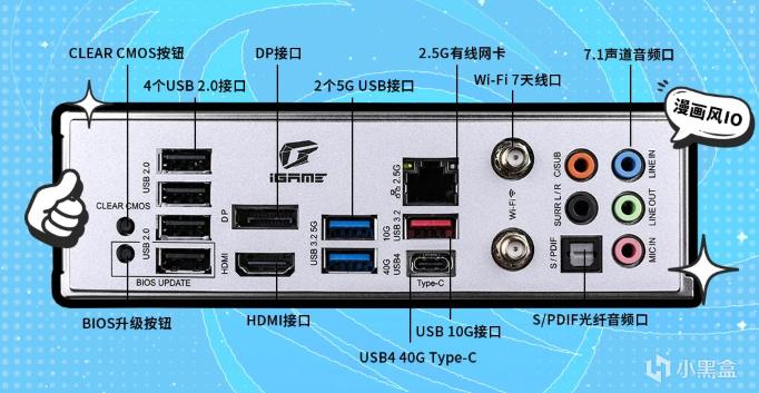 網絡方面則是新主板標配的2.5G有線及WIFI7無線,主板IO上甚至還有Clear CMOS按鈕,方便超頻失敗時快速復原BIOS設置,這在千元級主板上比較少見。主板還帶有一個USB4 40Gbps接口,對於有快速傳輸數據需求的同學說會非常的方便。