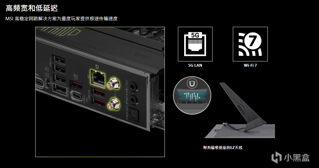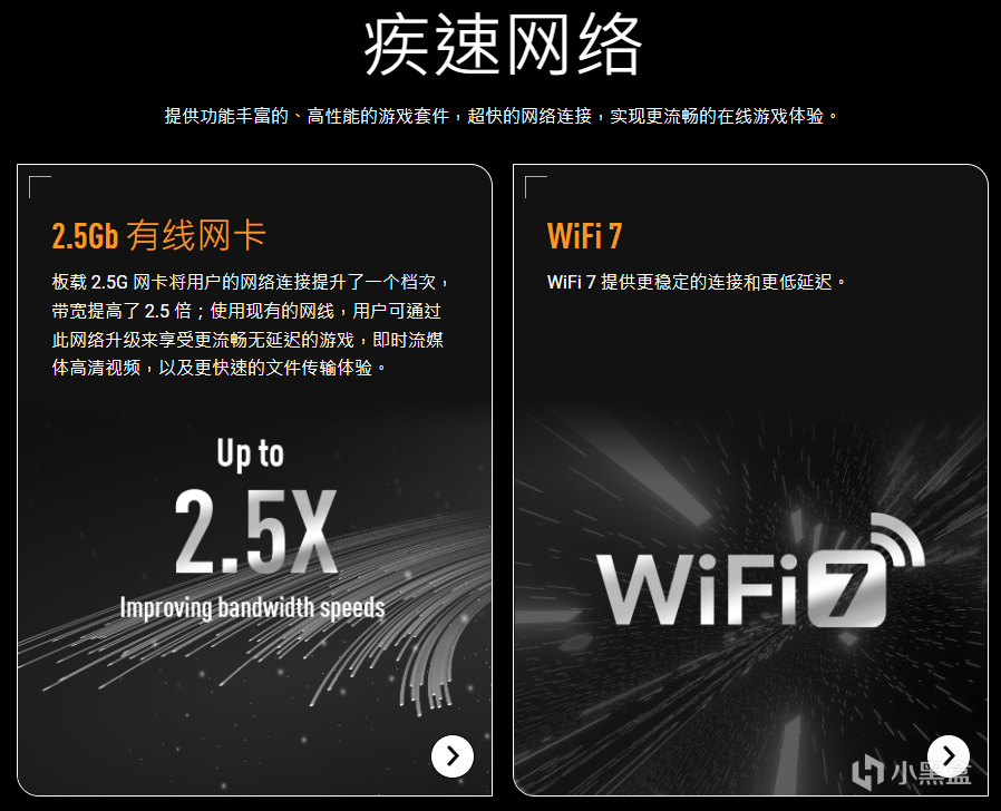 網絡部分採用英特爾Killer 5G有線網卡+WIFI7無線組合,理論延遲比普通2.5G網卡低 30%,不過我們普通用戶日常使用基本感受不出很大差異,但迫擊炮是本期4張主板中網絡配置最爲豪華的。