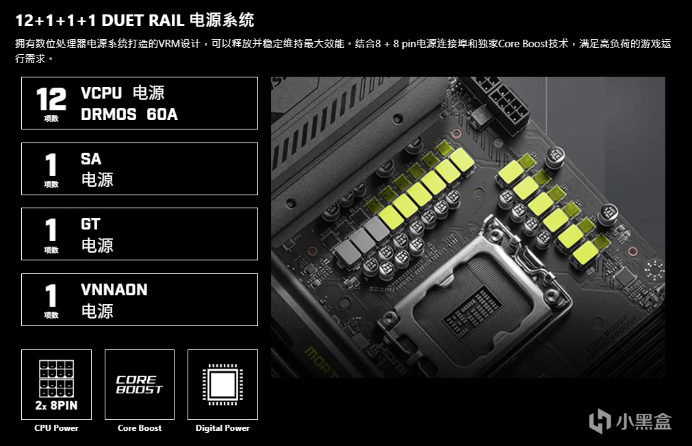 供電搭配12+1+1+1每相60A DrMOS,即使是帶酷睿Ultra 9 285K也沒有任何壓力,全實心雙8PIN供電接口,完美髮揮出CPU的全部能力。