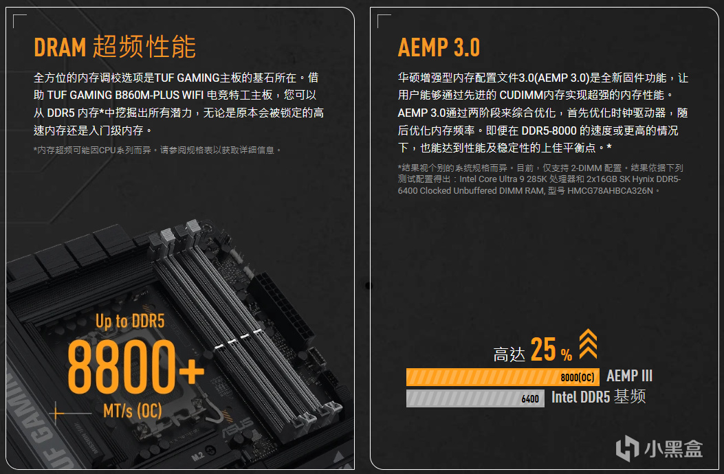 華碩TUF GAMING B860M-PLUS WIFI最大的優點是它的供電能力,但在其他規格上相對平庸。不管是內存超頻還是拓展接口,都平平無奇。