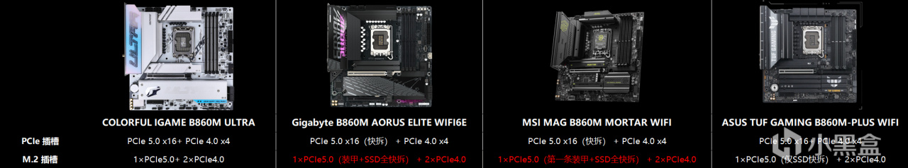 在對七彩虹iGame CVN B860M Ultra V20、技嘉B860M AORUS ELITE WIFI6E、微星MAG B860M MORTAR WIFI和華碩TUF GAMING B860M-PLUS WIFI這四款主板進行詳細瞭解後,我們來進行綜合對比,以便幫助不同需求的用戶做出更合適的選擇。