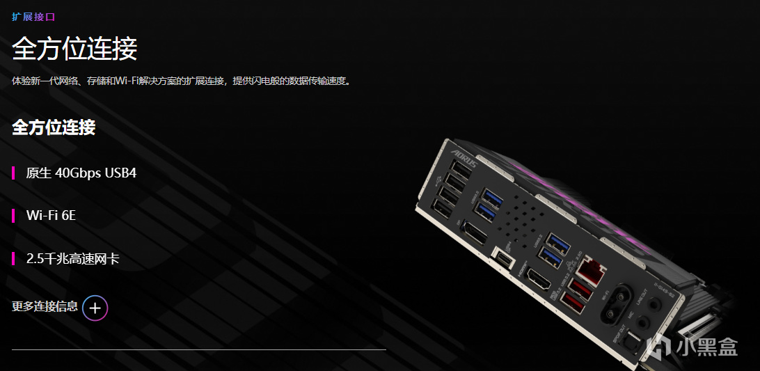 IO部分,技嘉也提供了一個USB4接口,對於有高速數據傳輸需求的朋友來說,簡直不要太好用。底部的PCIe4.0×4插槽還能再拓展出一個M.2接口出來,拓展性還是非常不錯。