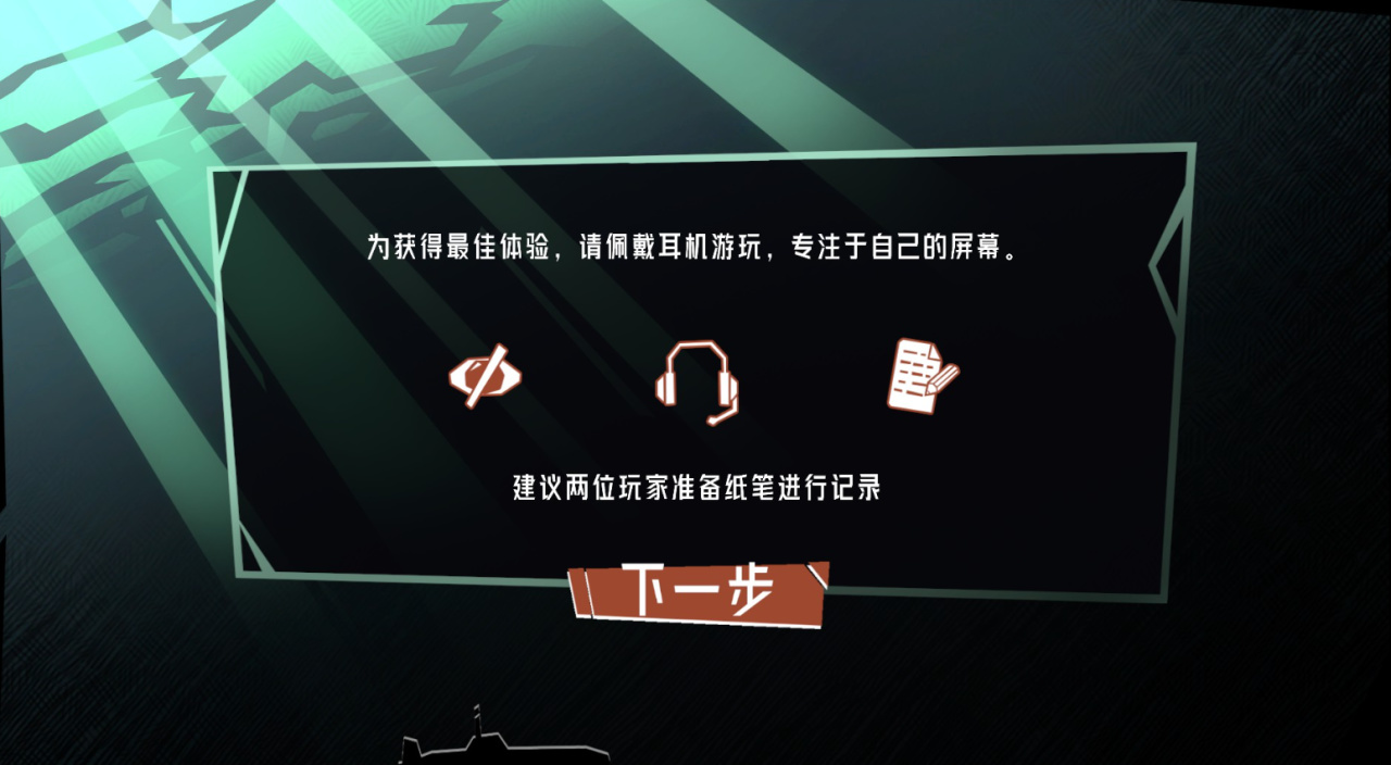 不过,在游戏正式开始前,制作组为玩家们提供了“开始前须知”:双方玩家需准备纸和笔进行记录,并佩戴耳机,打开麦克风,专注于自己的屏幕,不建议通过查看对方屏幕的方式进行游戏。
