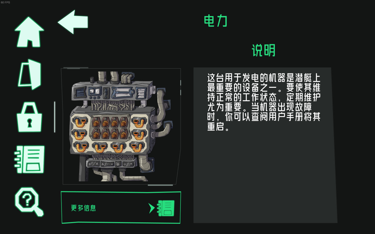 回到在第二章的“电力”设备中,操作方需要启动面前的电闸,才能打开电闸门,从而脱离困境。