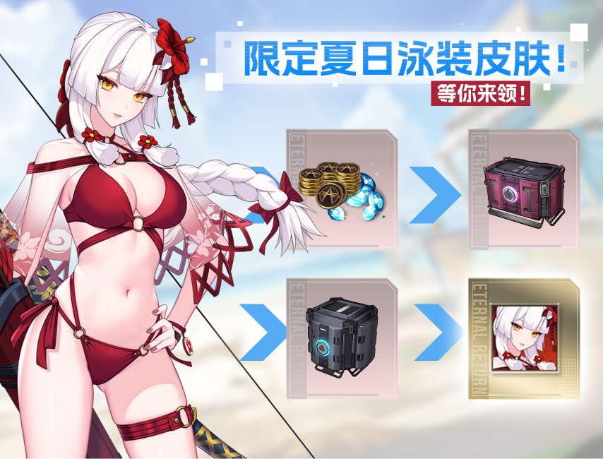 解鎖遊戲中特別任務書,完成每日活動任務,積累積分即可逐步解鎖豐富獎勵,最終大獎 —— 【清涼一夏 莉央】泳裝皮膚!重溫那個心動的夏天吧!