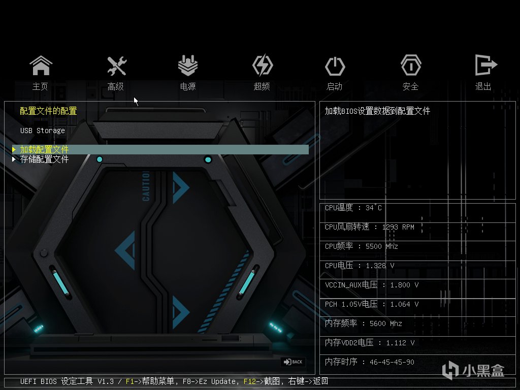 开启IPO技术方法很简单,在主板全默认状态下,使用U盘加载IPO配置文件保存重启即可,铭瑄提供了IPO7600低温度和IPO7800低温度两套配置,对于海力士M-Die来说直接选择后者更为合适,可达成7800C38-48-48-108低时序。