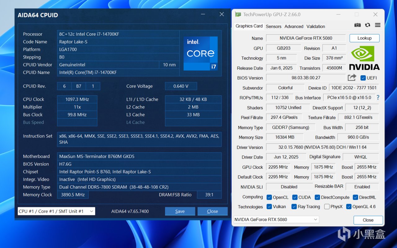 英特尔平台配置一览,为最大程度体现CPU性能差异,搭配显卡是旗舰级的NVIDIA GeForce RTX 5080,并开启Resizable BAR技术调优,搭载Windows 11 24H2最新版本系统和NVIDIA GameReady 576.80 WHQL显卡驱动。