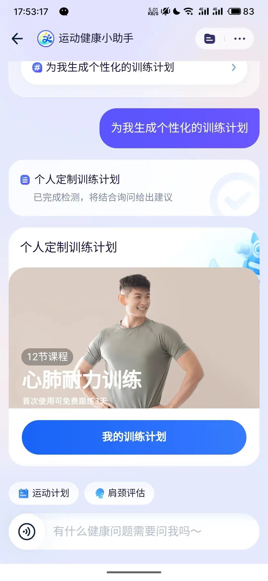 比如最近你想减肥,就可以打开运动健康小助手,它能根据你的身体数据,给出一份定制化的运动攻略,肯定比什么健身博主更有针对性。