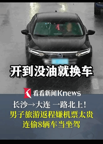 近日,一男子旅游嫌返程1500元机票贵,一路向北从湖南到辽宁连偷8车代步,车内财物充当路费,开到没油就换车,目前全部被盗车辆已追回,男子在河北省石家庄市被警方抓获。