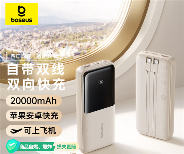 3、倍思充電寶自帶雙線(89元):雙機黨福音 百元內性價比王