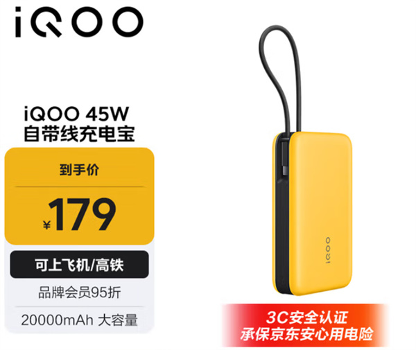 6、iQOO 45W充電寶自帶線(179元):潮玩設計 疾速快充