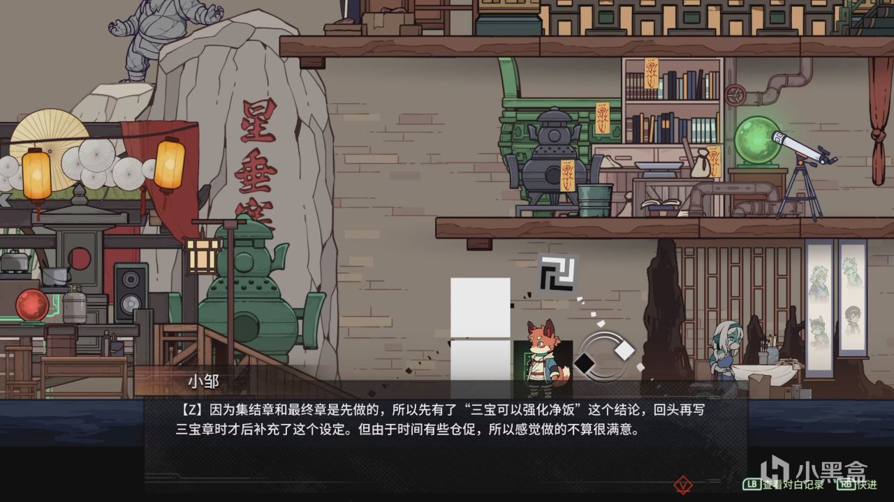 如果你在通關後,進入開發者房間,和左側的開發者對話開啓導演副音軌,你還能在每個展品完全收集後,看到團隊一路走來的心路歷程和點點滴滴。