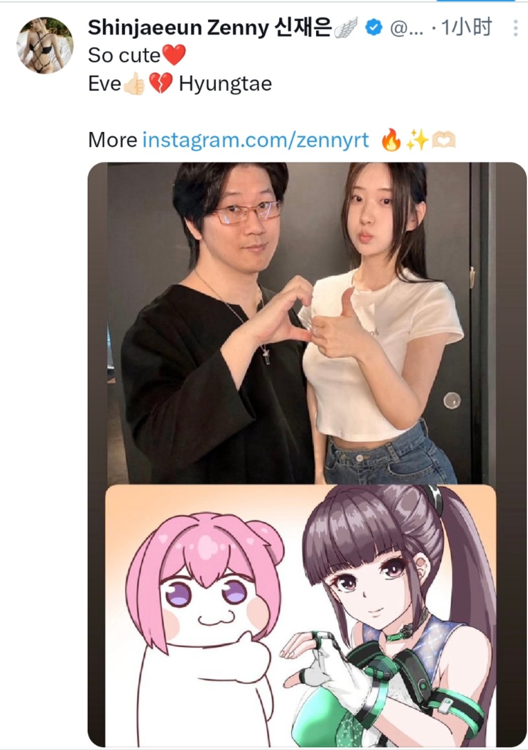 和尹雪花不同,自PC版剑星发布后,申才恩在社交媒体多次发布了与剑星制作人金亨泰的合照。可能申才恩是伊芙的最初体模,也就是先来后到的待遇吧~(玩笑)