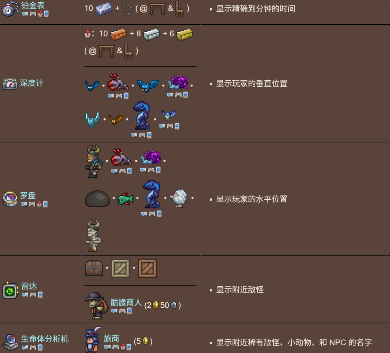 A:在前期可以拿着物品与向导对话来查询用途,或者通过查询wiki来了解它们的制作流程及用途