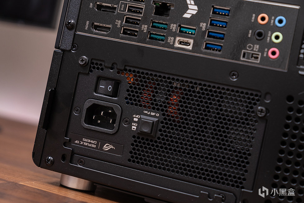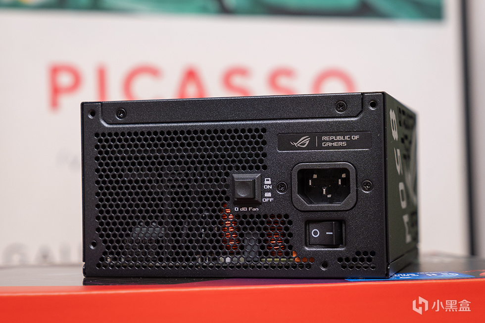 华硕ROG STRIX 白金雷鹰850W 氮化镓电源尾部带有0dB模式开关,开启后电源负载低于40%,电源风扇将完全停转,不产生噪音,同时减少灰尘进入。