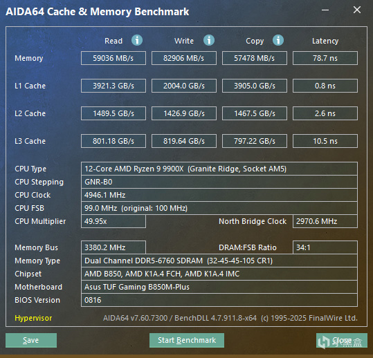 AIDA64 Cache & Memory Benchmark成绩
