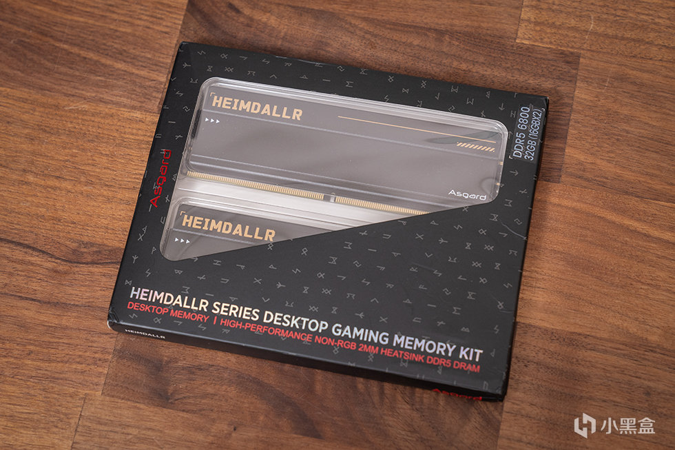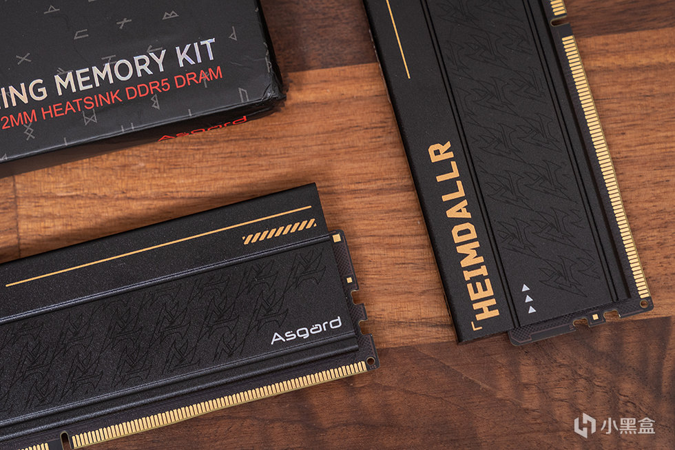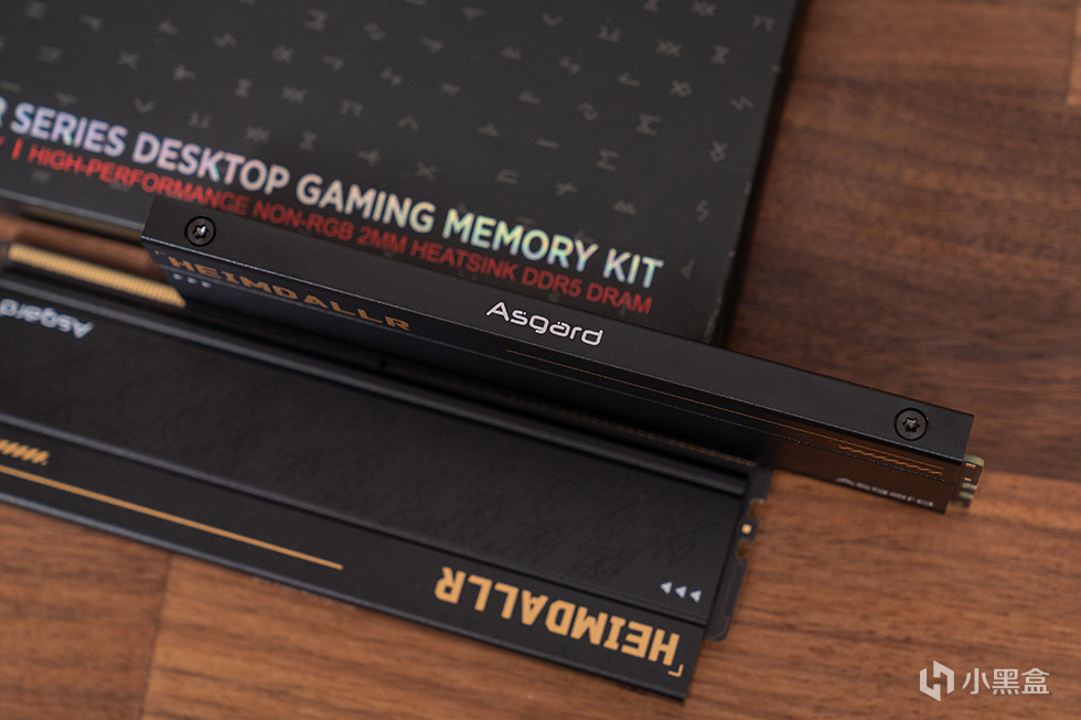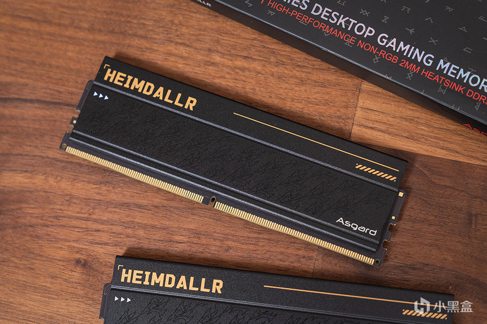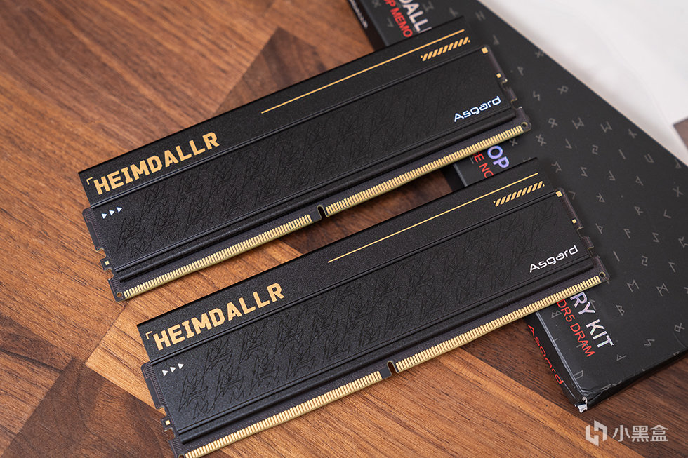 阿斯加特 海姆达尔系列DDR5内存为无光设计,采用黑色的全铝合金散热马甲,马甲厚度达到2mm,表面高目数细腻硼砂、氧化工艺处理,带来细腻的冰凉质感。散热马甲表面带有“HEIMDALLR”的金色字符标识,下方位置为堆叠纹理装饰,这种低调而精致的设计风格,既彰显了北欧神话中守望者的沉稳气质,又完美契合了追求纯粹性能的玩家审美。