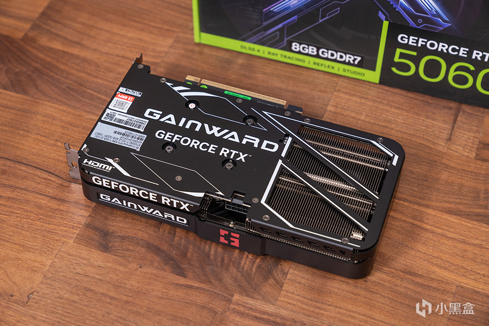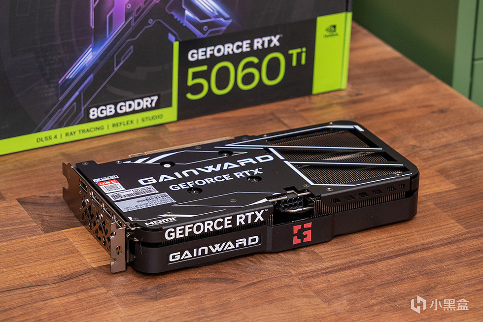 耕升 GeForce RTX 5060 Ti 追风OC 8G显卡采用穿透式金属散热背板设计,带有耕升的Logo以及GEFORCE RTX 白色字样及线条涂装,右侧大面积的镂空空间,配合第三代「炫风之刃」风扇,大风流直接穿透尾段的散热鳍片,有效提升散热效果。