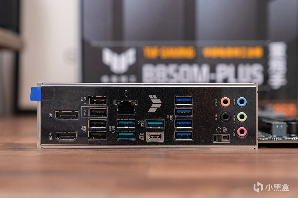 华硕 TUF GAMING B850M-PLUS重炮手主板采用一体化背板设计,背板采用不锈钢材质,更为耐用的。提供了1 x USB 20Gbps Type-C接口、3 x USB 10Gbps Type-A接口、4 x USB 5Gbps Type-A接口、4 x USB 2.0 Type-A接口、1 x DisplayPort 接口、1 x HDMI™接口、1 x Realtek 2.5Gb 网络接口、5 x 音频接口、1 x BIOS FlashBack™按钮。