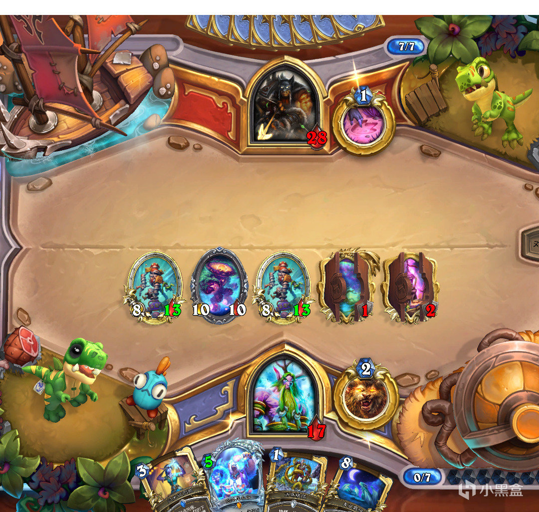 瑪潤這東西也是上桌了,八費一波解場加返場還加任務進度。有腦鰓魚人和1費新法術,魚人騎意外的不缺過牌,後面每一回合都能持續給壓力,對面一波解不完就得死。