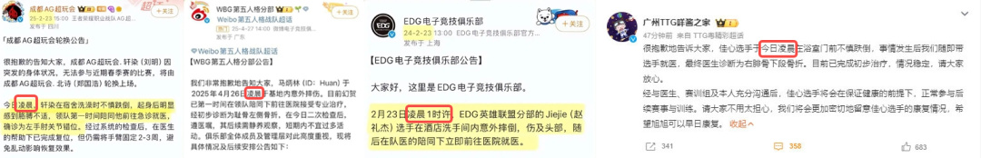 此前,EDG《英雄联盟》分部的打野选手Jiejie、成都超玩会《王者荣耀》分部对抗路的轩染,以及WBG《第五人格》分部的Huan,此前都曾因洗澡时不慎摔倒,而折戟于浴室。
