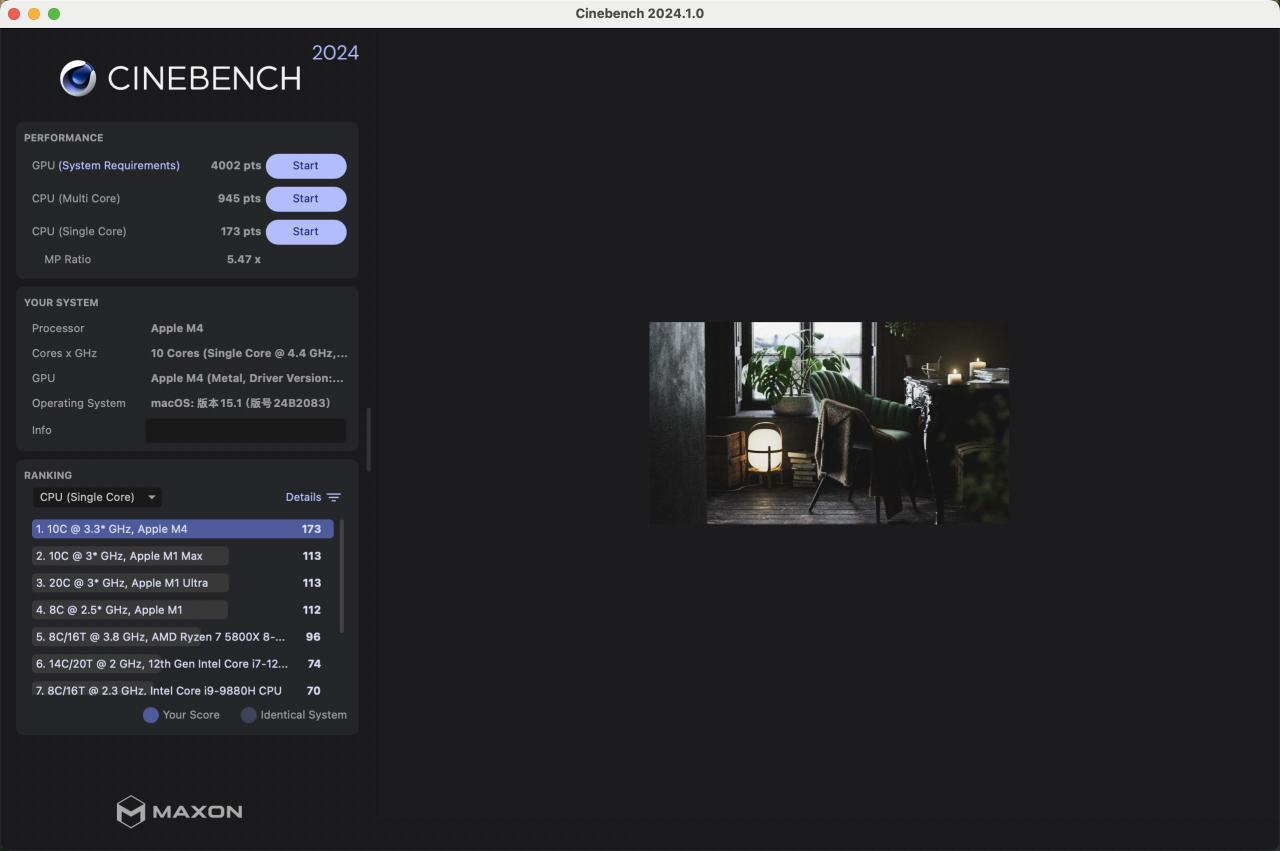 在啓用新機制的Cinebench 2024裏,M4的單核成績同樣處於頂端。