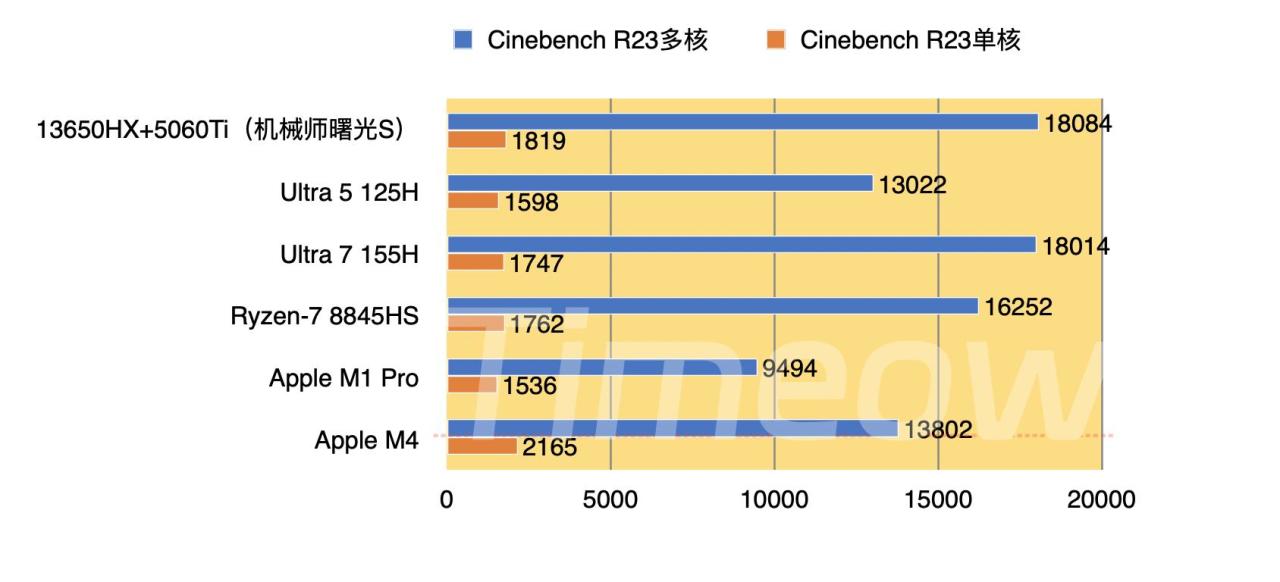 同樣,在我整理的同級別測試數據庫中,它的單核成績遠超所有,多核成績也僅次於Ultra 7 155H和i7-13650HX。