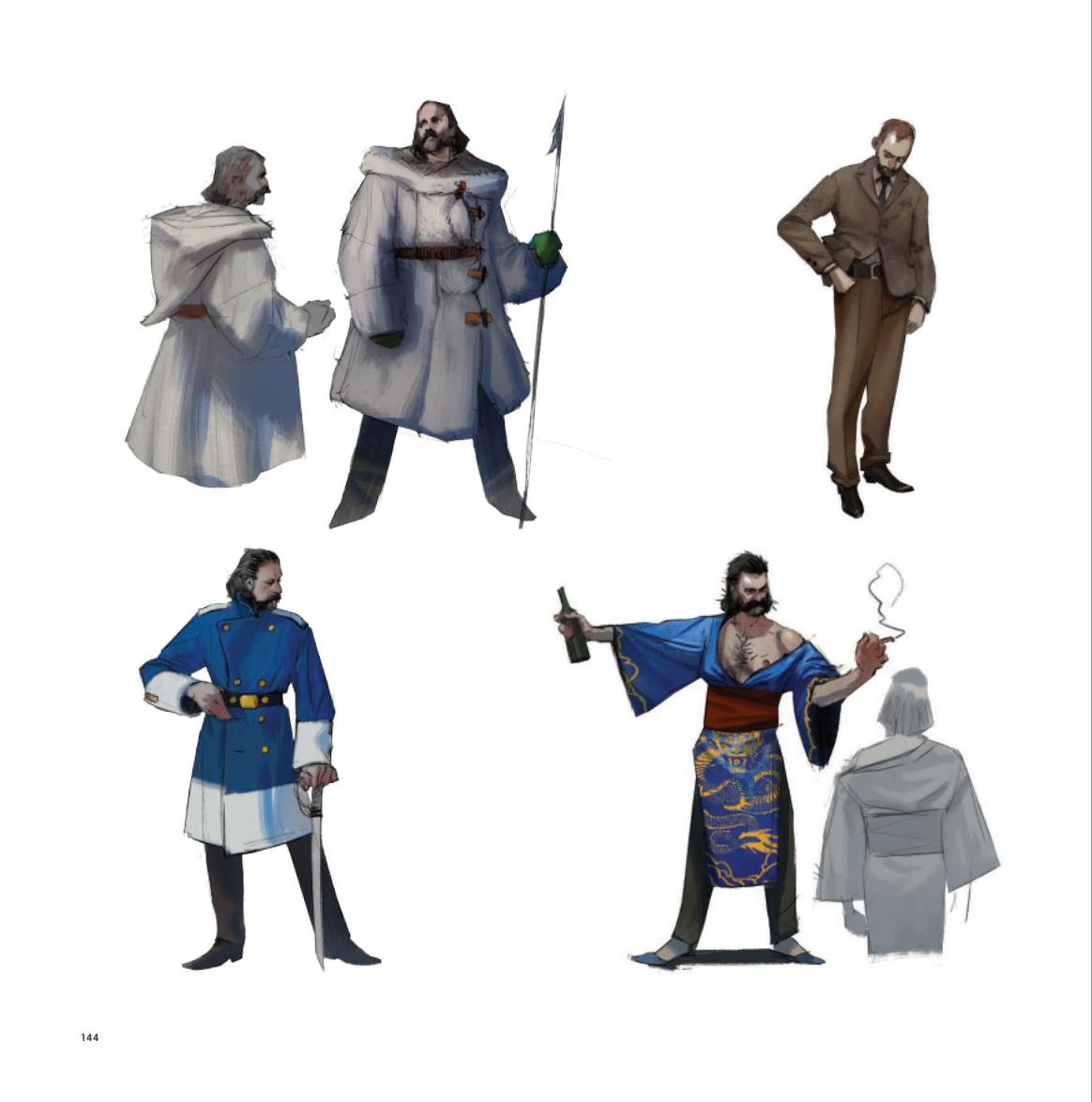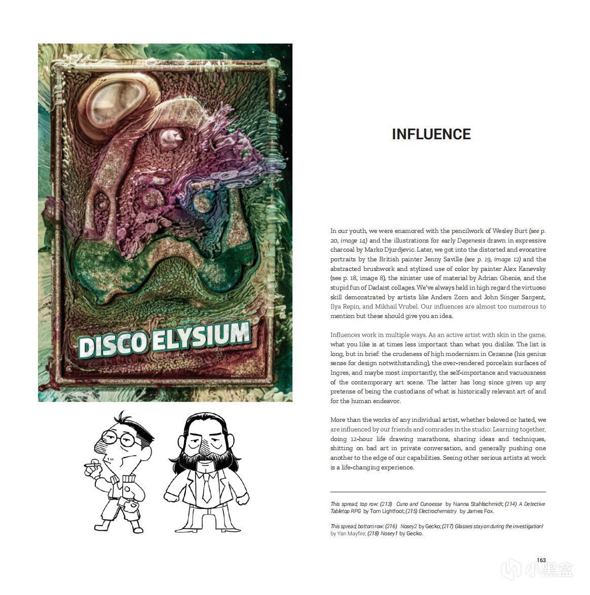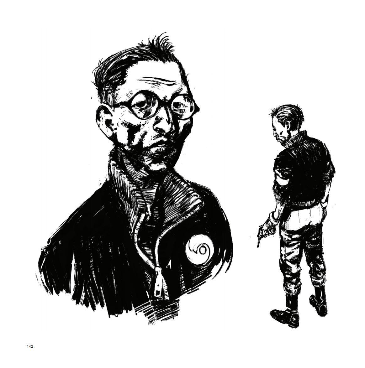 在年輕的時候,我們着迷於韋斯利·伯特的鉛筆畫作品(見第20頁,圖14)以及由馬爾科。久爾傑維奇用富有表現力的炭筆繪製的早期《 Degenesis》插圖。後來,我們被英國畫家珍妮·薩維爾的扭曲而富有表現力的肖像畫所吸引(見第19頁,圖12),以及畫家亞歷克斯·卡涅夫斯基抽象的筆觸和風格化的色彩運用(見第18頁,圖8)。我們還欣賞到了阿德里安·蓋尼對材料的邪惡運用,以及達達主義拼貼畫的愚蠢趣味。我們一直高度推索安德斯·佐恩、約翰·辛格·薩金特、伊利亞·列賓和米哈伊爾·弗拉韋爾等藝術家所展現的精湛技藝。我們的影響幾乎多得難以盡數,但這些應該能讓你略知一二。