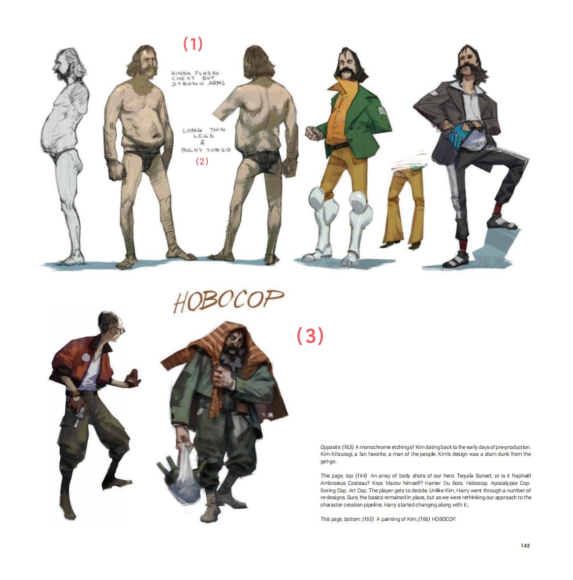 我們主人公的一系列人體照: 龍舌蘭日落?還是拉斐爾.安布羅休斯.科斯托?克拉斯-馬佐夫本人?哈里爾.杜.博伊斯?末日警察? 無聊的警察?當然這一切最終都由玩家決定。與金不同,哈利形象經歷了多次重新設計。當然,最基本的東西還是保留了下來,但當我們重新思考角色創作流程時,哈利的形象也開始隨之改變。