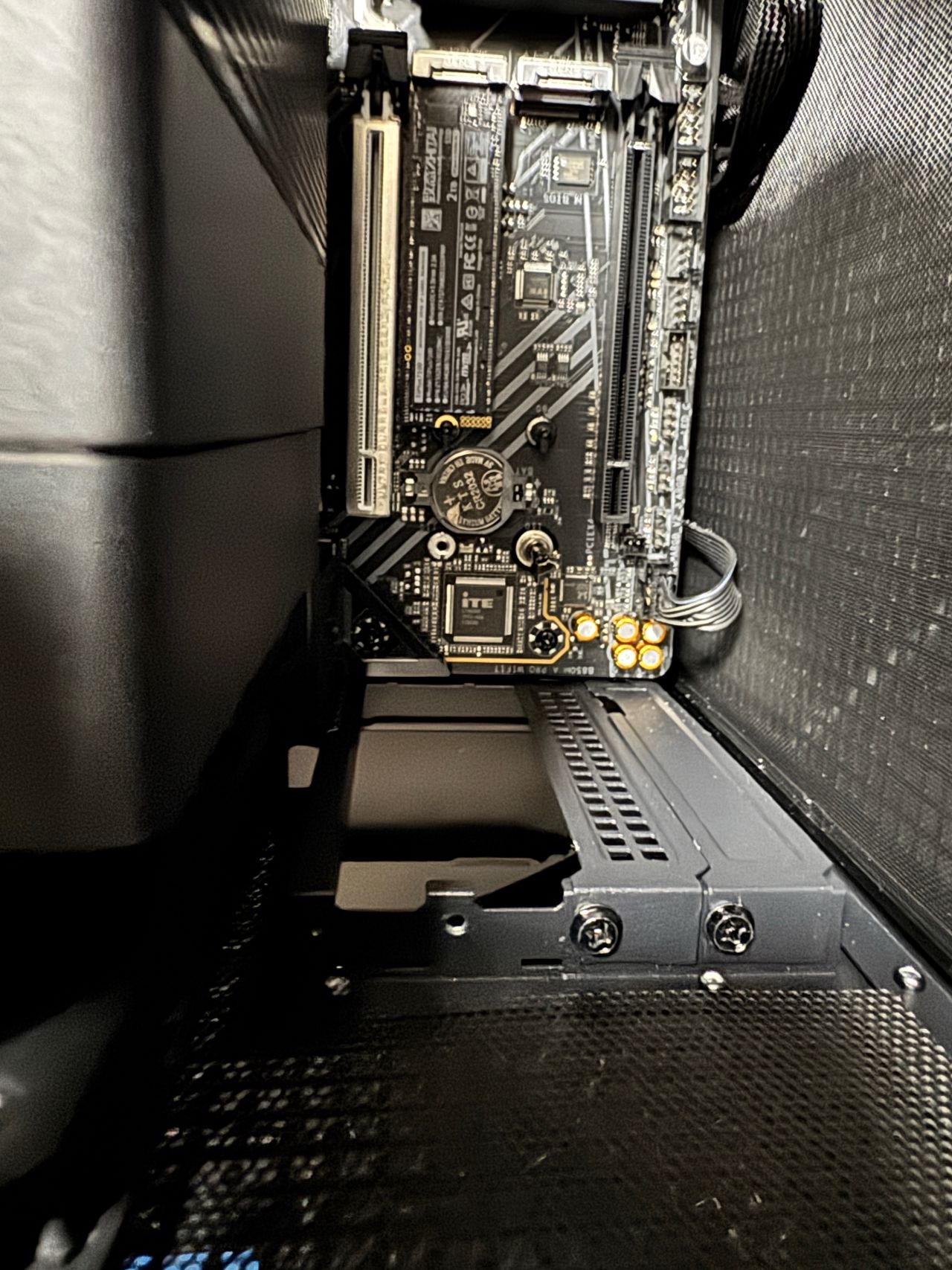 如果显卡PCIe槽在第二位,固态接口在第一位,需拆中间两个挡板。