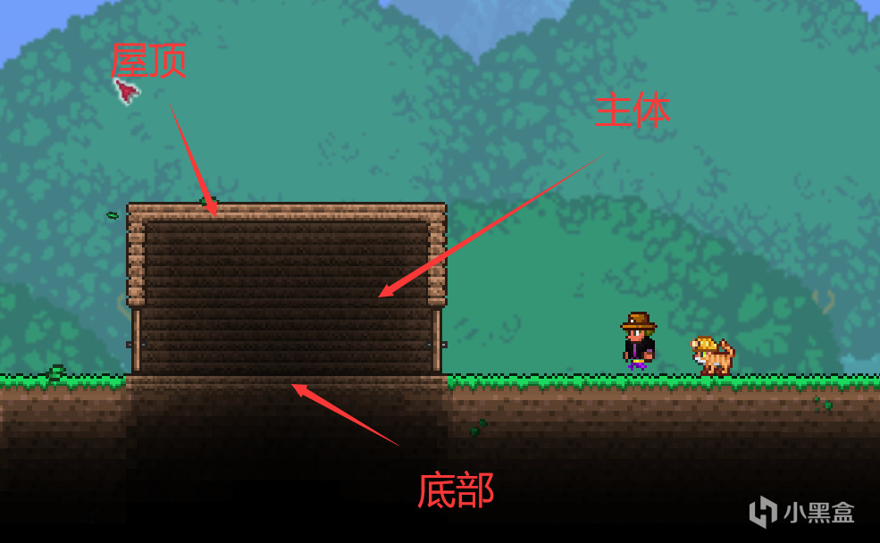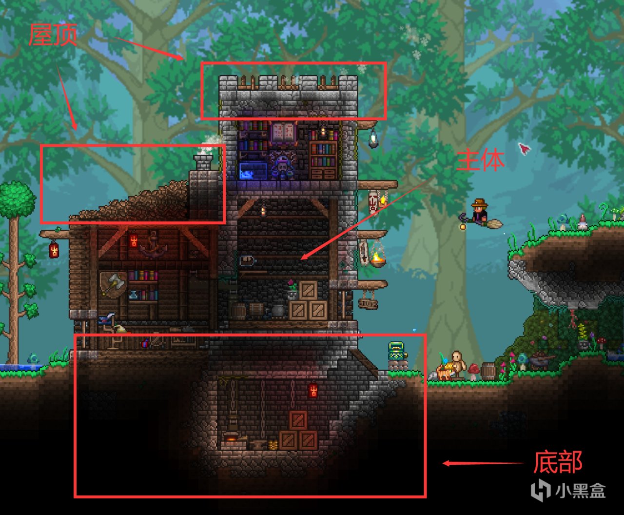 一般来说,泰拉里的建筑基本上都可以大致分为底部,主体和屋顶三部分。