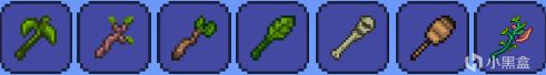 接下来这些是可选工具。从左到右依次为:红木树叶魔棒,生命红木魔棒,生命木魔棒,树叶魔棒,白骨魔棒,蜂巢魔棒,再生之斧。