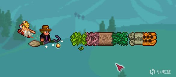 坐骑选择女巫扫帚。不同于其他飞行坐骑,女巫扫帚拥有无限滞空能力的同时还可以穿过三格高的空间,对建筑党来说非常方便。如果想要清出大片空地以供建筑,挖掘机(钻头控制装置)也是可以使用的,但千万别在建筑过程中把它给按出来