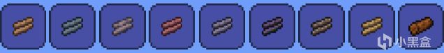 基础木质材料如下图所示,从左到右依次为:木材,暗影木,白蜡木,红木,乌木,阴森木,针叶木,珍珠木,棕榈木,王朝木。