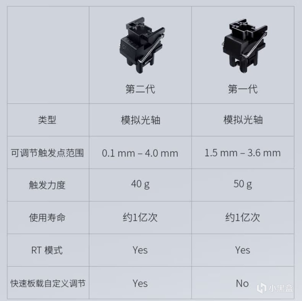 来到了二代的模拟光轴对比一代又有了不少的优势。例如可调节键程的范围增加到了0.1mm-4.0 mm,触发力度也由50g降低到了40g。同时使用寿命还保持到了1亿次,完全没有后顾之忧。按下使用的触发和回弹比较饱满,声音方面就像不断捏动的空塑料瓶一样上头。
