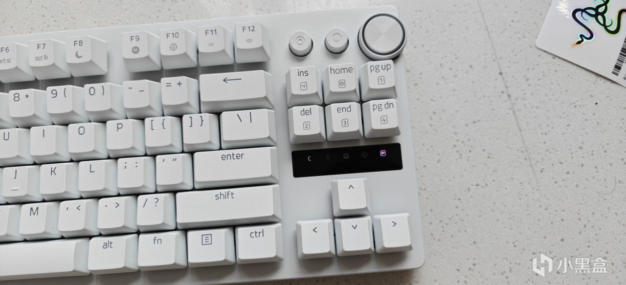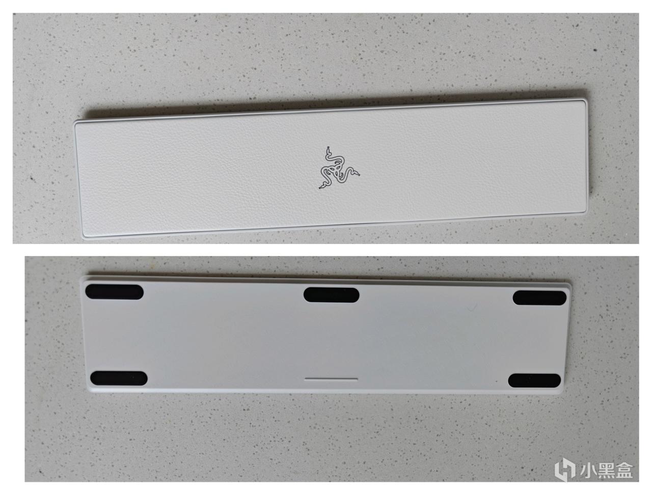 和其他大多数键盘不同的是,雷蛇的一些产品一直都有附赠腕托的优良传统。这次的腕托更是下了血本,因为是只要一靠近就可以自动吸附的磁吸结构。腕托支撑材质为人造皮革,支撑起手腕来回摩擦体验良好。手腕正面为白色,背面为了加强防滑还增加了五个硅胶垫。腕托在日常使用的情况下,可以完全做到随那随用。不喜欢可以直接拿掉,毕竟我们的宗旨是“可以不用,不能没有!”
