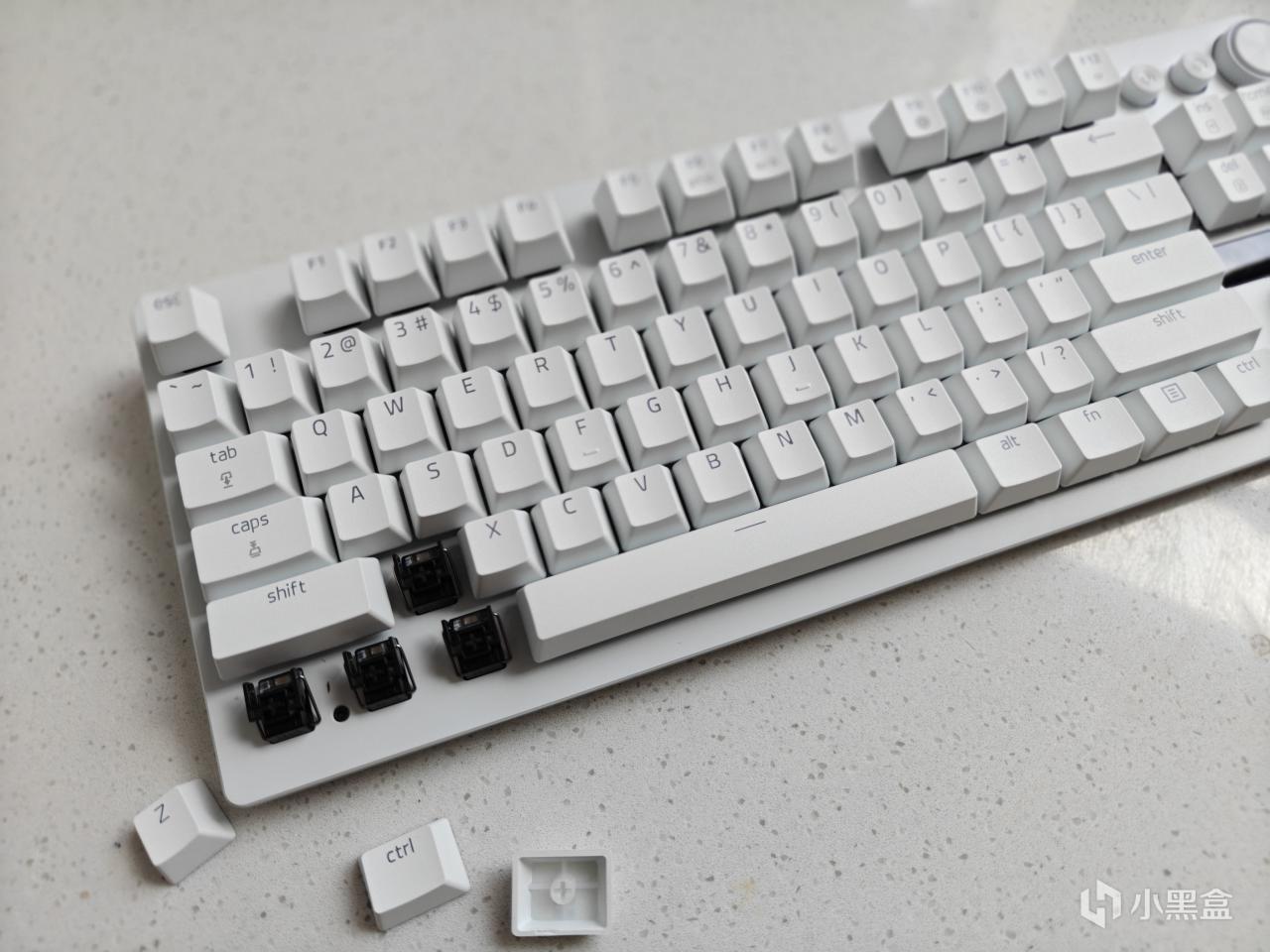 之所以被那么多的职业选手使用,键盘的轴体是个重点。雷蛇这次在专业竞技版上采用了第二代模拟光轴,上面提到的键程调整和RT模式灵敏度也正是因为这个轴体的特别。