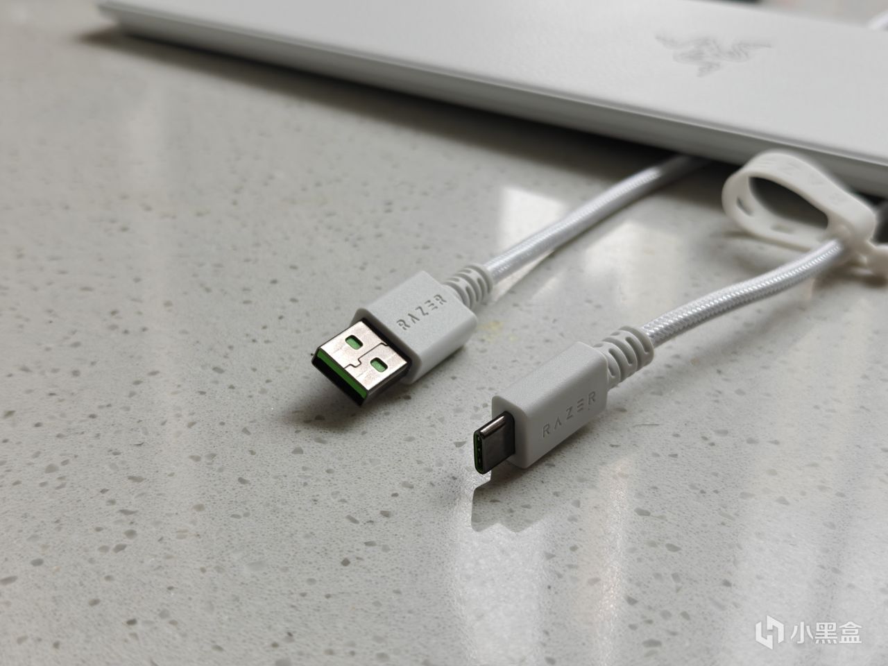 数据连接线主体是经典的编织线材质。而且数据线有足够两米的长度,日常拖拽完全没有影响而且耐磨损程度也很高。另外有亮点的是雷蛇的特色绿也出现在数据线两个接口上,算得上画龙点睛。