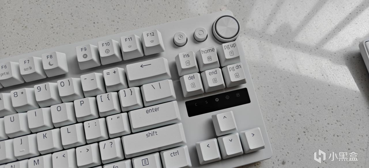 在右下的方向键上方有一块LED指示灯阵列。在我们通过组合快捷键来调整我们自定义的键程配置文件的时候,阵列会亮起对应的字母。另外键盘还支持无软件触发灵敏度和触发高度调整,依旧是这块指示阵列的功劳。