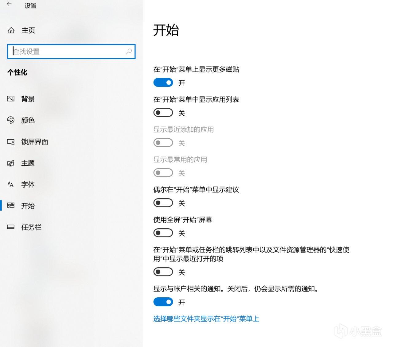 打開Windows設置(Win+i)-->個性化-->開始